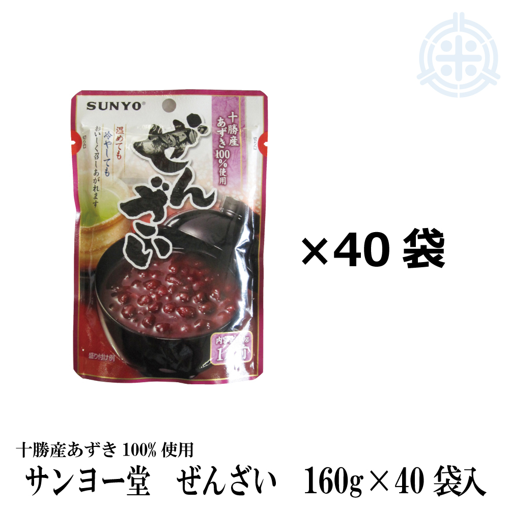 北海道十勝産小豆使用 サンヨー堂 ぜんざい パウチ 160g×40袋 SUNYO 送料無料 レトルト 小豆 スイーツ 非常食 保存食 常温保存
