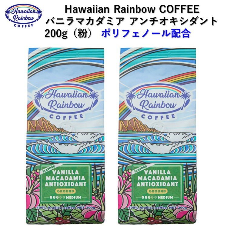 コーヒー ポリフェノール配合 バニラマカダミア アンチオキシダント 200g×2個セット 粉 ハワイアンレインボーコーヒー 中煎り 人気 フレーバーコーヒー 新商品