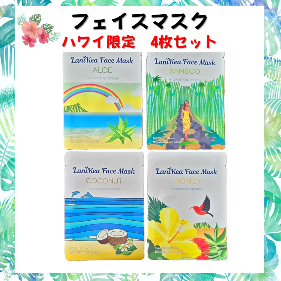 フェイスマスク ハワイ限定 ラニケアフェイスマスク 4種類 4枚セット aloe honey coconut bamboo ハワイアンフェイスマスク Lanikea Face Mask