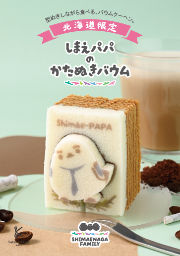 香り深いコーヒーミルク味の生地に、かっこいいパパ「しまえパパ」を描いた平らなバウムクーヘン。