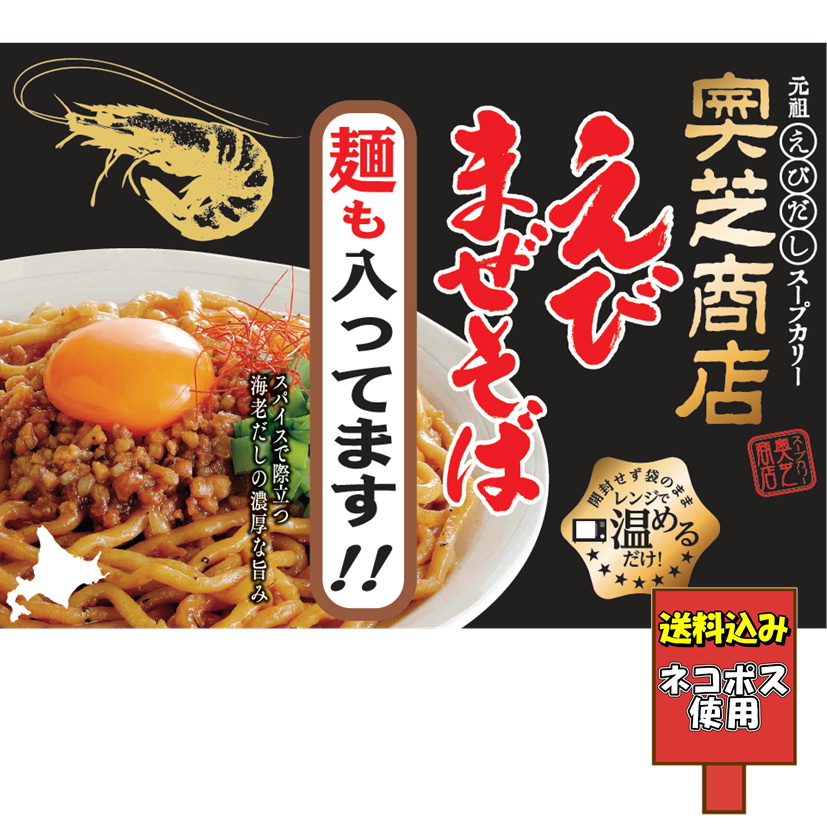 送料込み 奥芝商店監修 えびまぜそば 元祖えびだしスープカリー レンジ調理 ゆで麺 1食 レトルト 麺入り