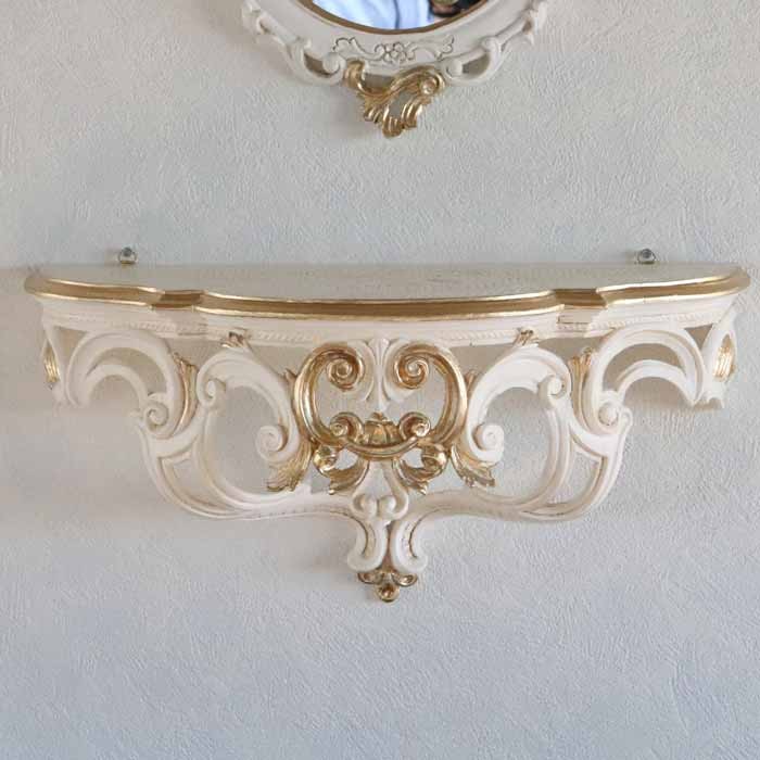 イタリア製 コンソールL 50cm幅 壁掛け アイボリー ゴールド ヨーロピアン アンティーク エレガント EUROMAMRCHI 658