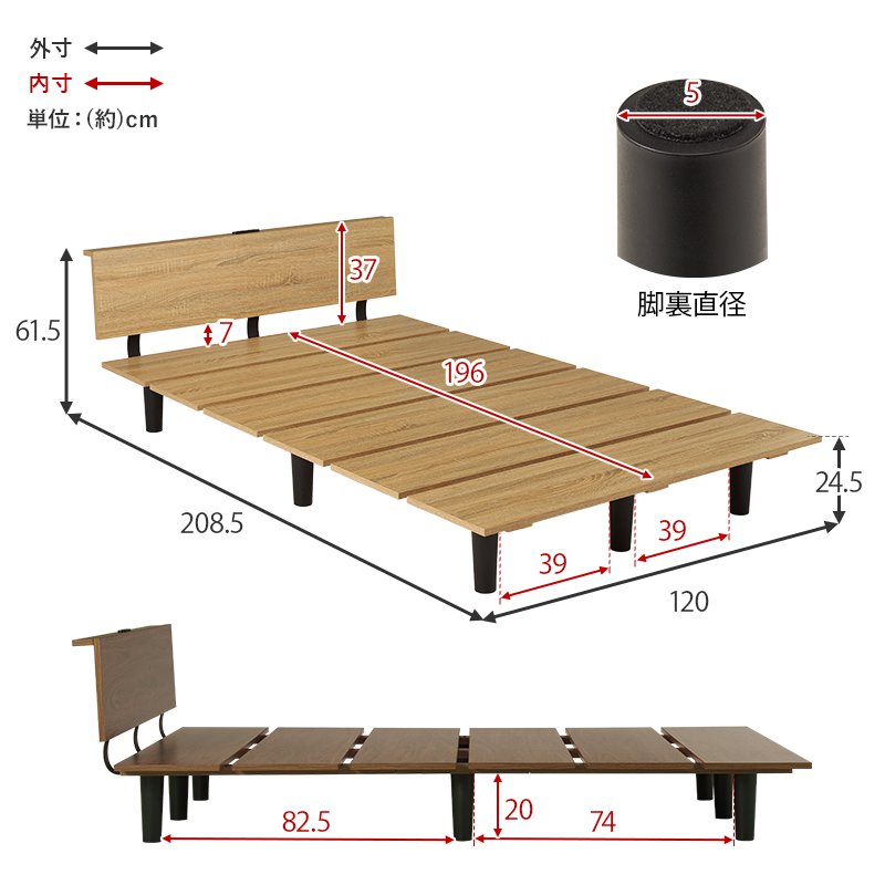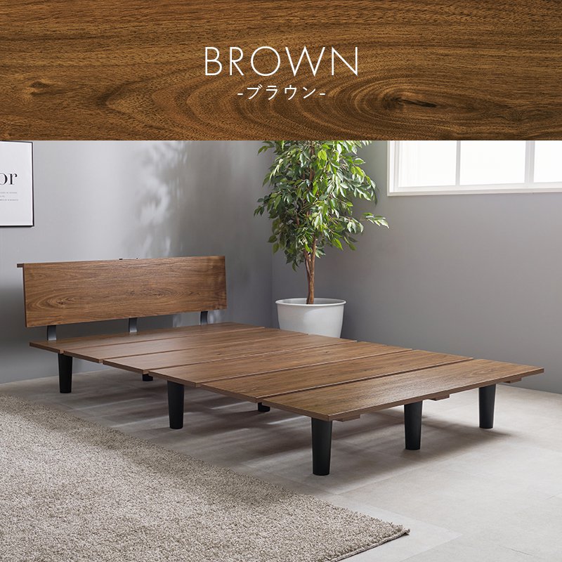 ブラウン セミダブルベッド ローベッド 茶 フロアベッド ベッド セミダブル コンセント付き フレームのみ ナチュラル