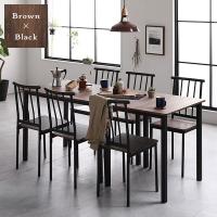 食卓テーブルセット 6人用 テーブル180cm チェア6脚 おしゃれ ブラウン×ブラック