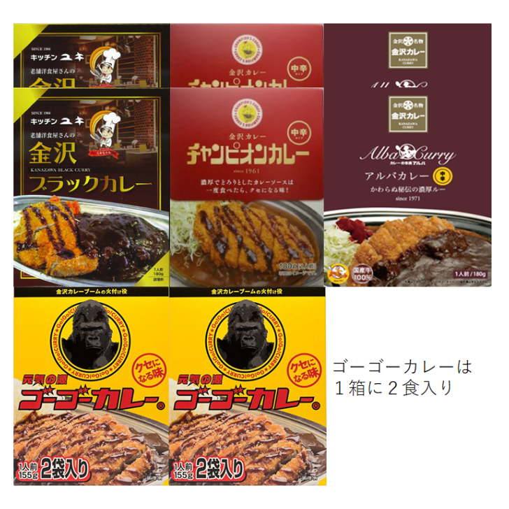 【Z】老舗金沢カレー詰め合わせ 計10食 【ゴーゴー4食(2箱)、アルバ2食、チャンカレ2食、キッチンユキ2食】 宅配80サイズ