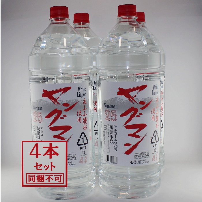 富山の甲類焼酎 25% ヤングマン 4L (4本)【同梱不可】【業務用】