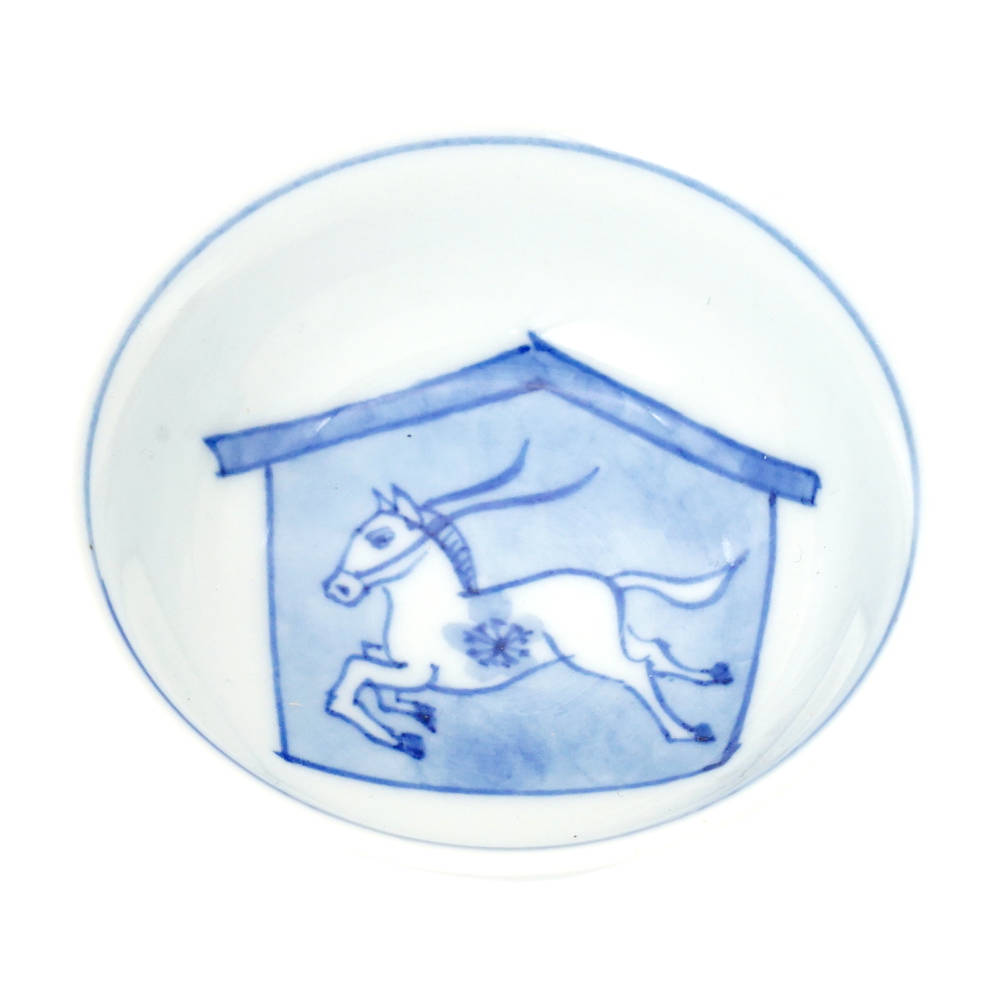佐野慧成 九谷焼干支盃 染付午
