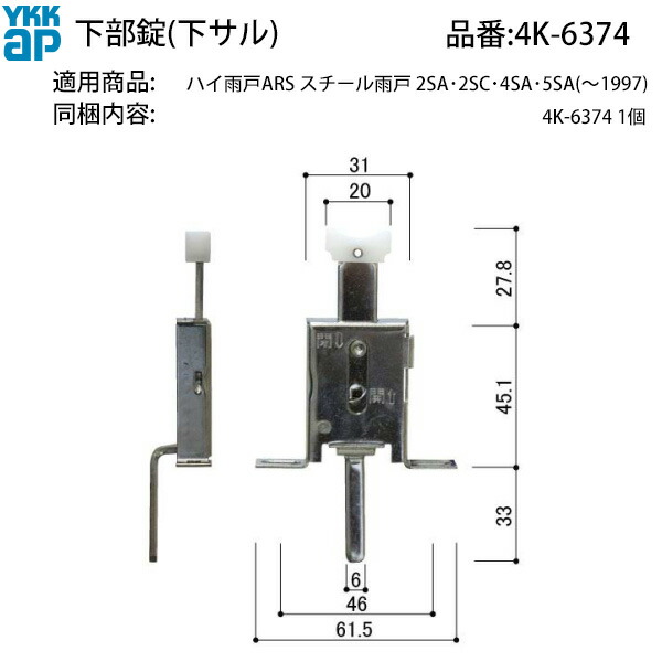 YKK AP 純正 スチール雨戸用下部錠 HH-4K-6374(下サル)2SA・2SC・4SA・5SA対応 古い雨戸のカギ不良を解消!純正下部錠で安心補修