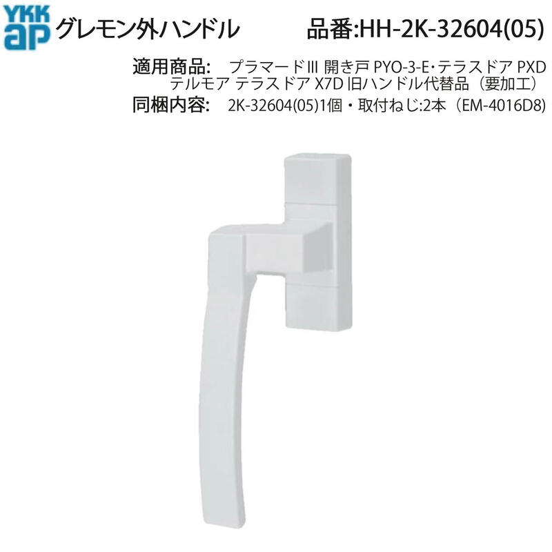 YKK AP グレモン外ハンドル HH-2K-32604 HH-2K-32605 外部ハンドル 交換用レバー 錠操作ハンドル ねじ同梱 ハンドル破損補修 ガタつき改善 建具メンテナンス用