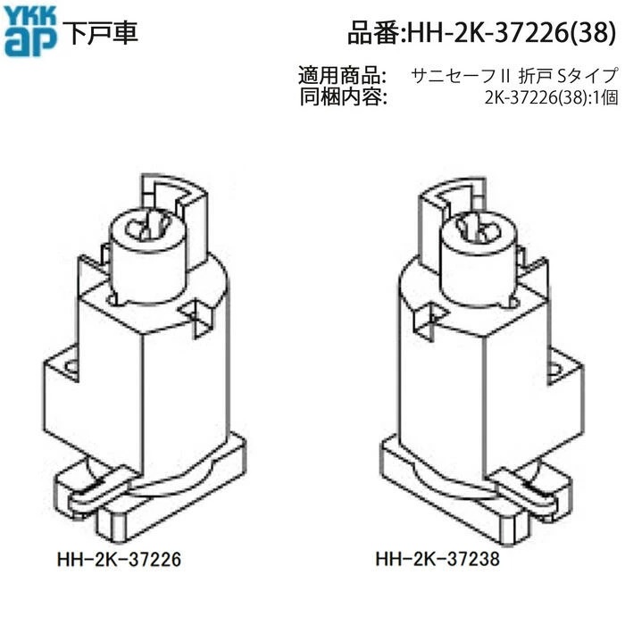 | ■備考 | 戸車本体:摺動側(可動側)用 浴室側から見て右側可動用:HH-2K-37226(旧品番:K-38285) 浴室側から見て左側可動用:HH-2K-37238(旧品番:K-39348) |