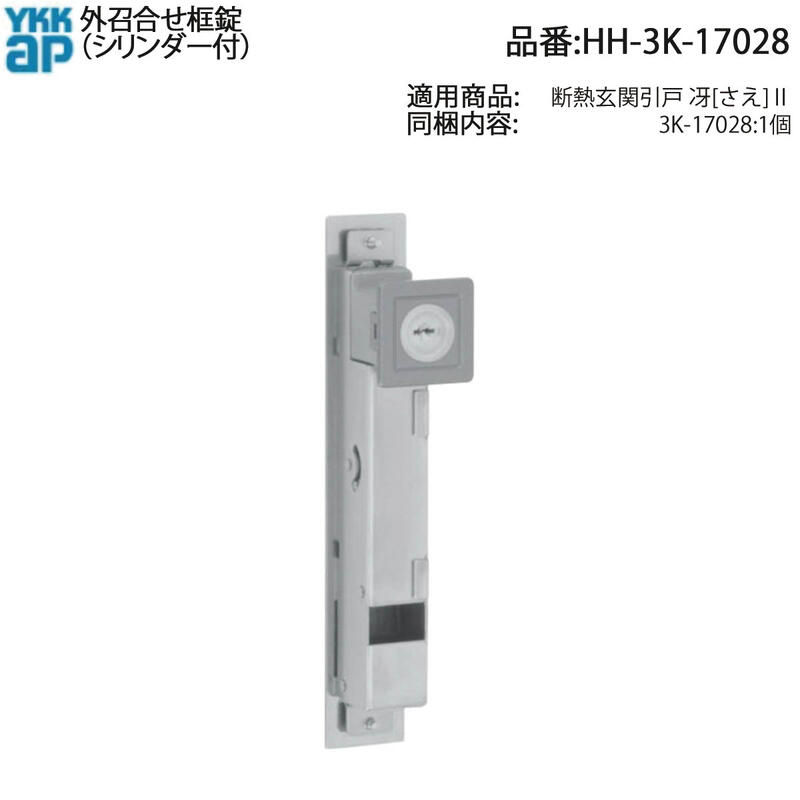 YKK AP 外召合せ框錠 HH-3K-17028 引戸用 交換ロック 3K-17028 シリンダー付 断熱玄関引戸 冴II 外部側召合せ錠 補修用鍵付きロック本体 鍵が掛かりにくい・