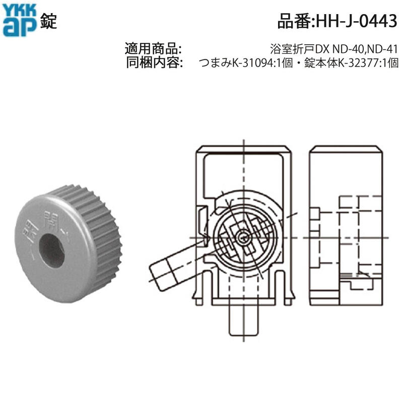 YKK AP HHJ0443 交換 用 部品 錠( HH-J-0443 ) 浴室折戸 DX ND-40 ND-41 折りたたみ戸 タオル掛け 純正部品 浴室の折りたたみ戸(折戸)に使用される錠前です!