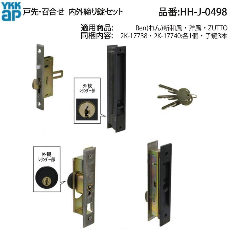 YKK AP 交換 用 部品 戸先・ 召合せ 内外締り 錠 セット( HH-J-0498 ) Ren れん 新和風 洋風 ZUTTO HHJ0498 玄関引戸 引き戸 鍵一式 YKK AP製玄関引戸の施錠