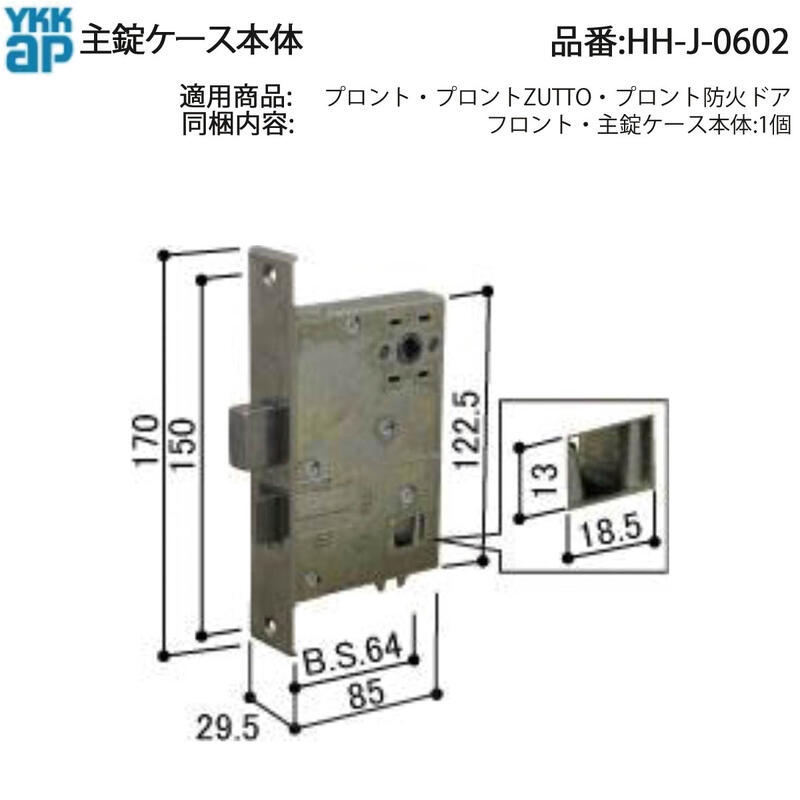YKK AP HHJ0602 交換 用 部品 主 錠 ケース本体( HH-J-0602 ) プロント ZUTTO 防火ドア 玄関ドア 美和ロック MIWA PESP プッシュプル錠タイプ