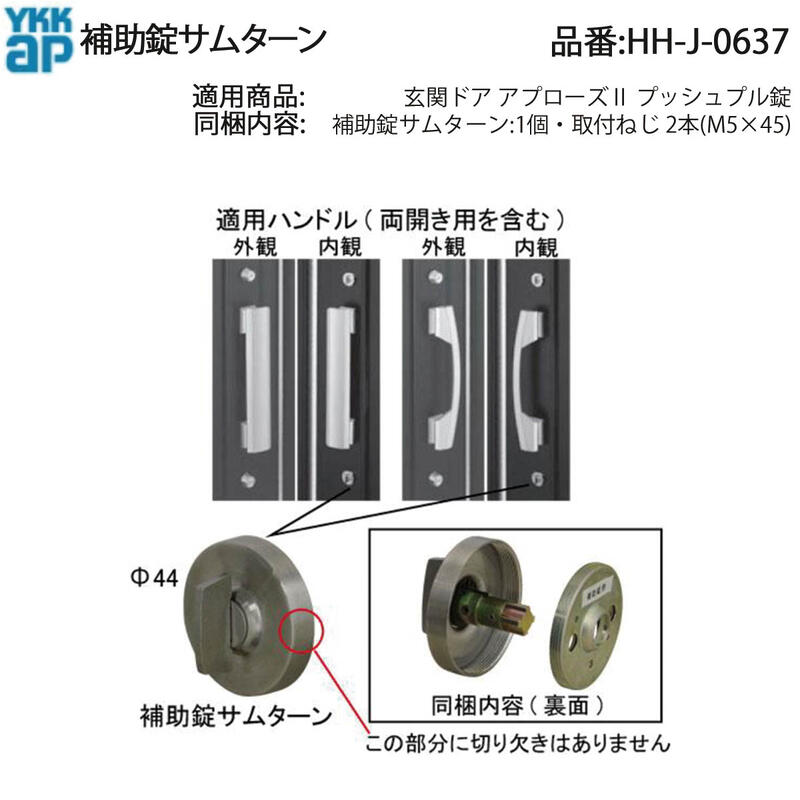 YKK AP HHJ0637 交換 用 部品 補助錠 サムターン( HH-J-0637 ) 玄関ドア アプローズII プッシュプル錠 室内側から 施錠 解錠 美和ロック MIWA YKK