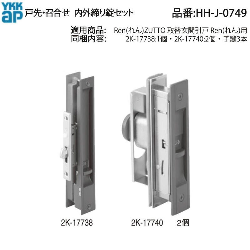 YKK AP HHJ0749 交換 用 部品 戸先・ 召合せ 外シリンダー セット( HH-J-0749 ) Ren れん ZUTTO 取替玄関引戸 玄関引き戸 鍵一式 3枚建用 WEST 玄関引戸の