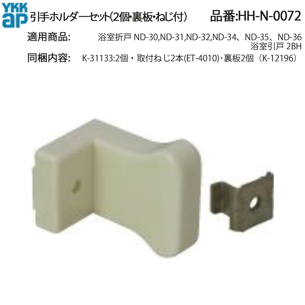 YKK AP 純正 浴室引戸 2BH 用 引手ホルダーセット HH-N-0072(2個入・裏板・ねじ付) ねじ・裏板付きで安心!DIYで簡単交換できる補修部材