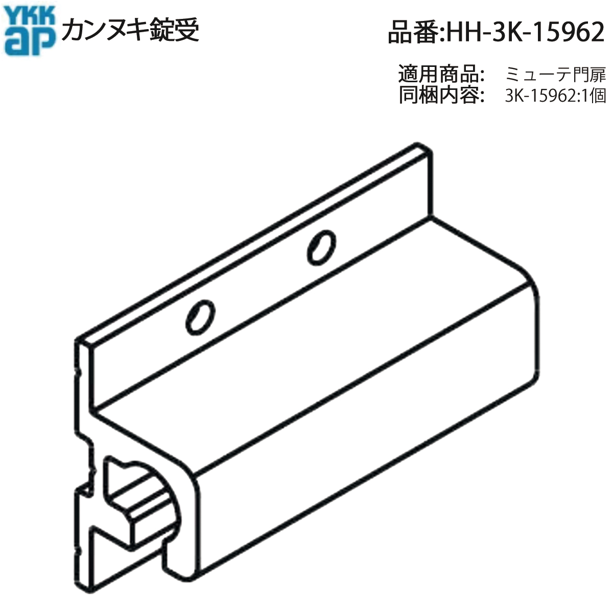 YKK AP 交換 用 部品 カンヌキ 錠 受( HH-3K-15962 ) HH3K15962 ミューテ門扉 アルミ形材門扉 両開き門扉 受け側の扉 門扉を閉じた際に扉側のカンヌキ錠ボルトを