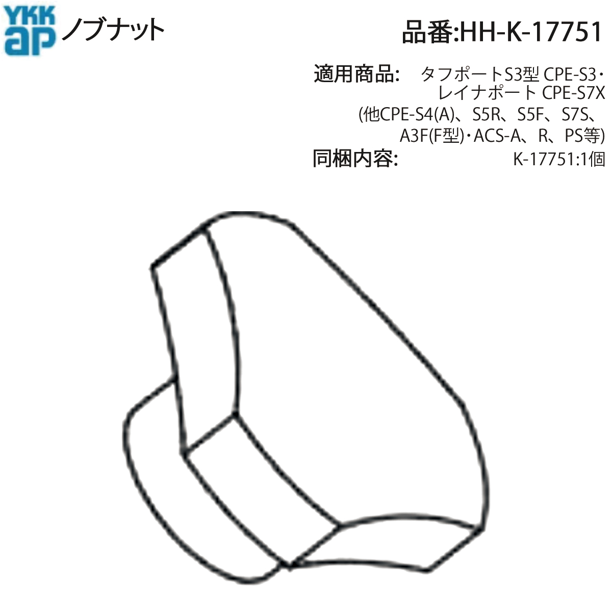 YKK AP 交換 用 部品 ノブ ナット( HH-K-17751 ) HHK17751 タフポートS3型 CPE-S3 レイナポート CPE-S7X サポート用 カーポート メンテナンス用 純正部品