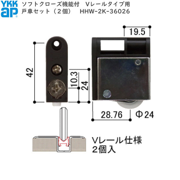 YKKAP 交換用部品 戸車(HHW-2K36026) 2個入 HHW2K36026 ソフトクローズ仕様用 室内引き戸部品(純正部品) 正規品・左右勝手対応・かんたん取付 メンテナンス部品
