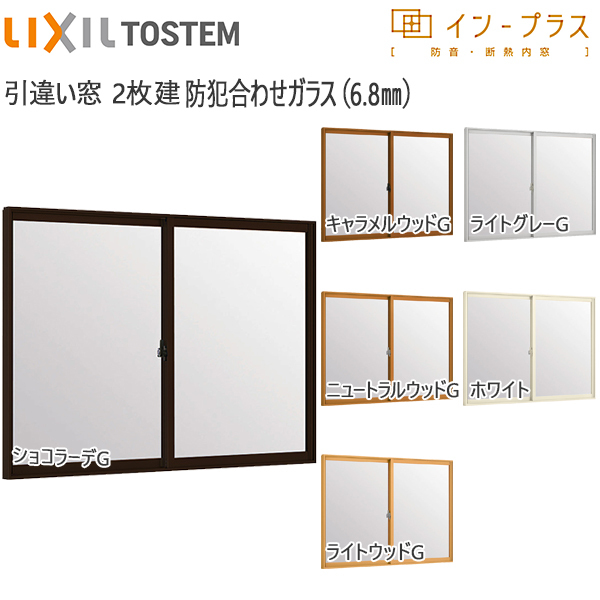 LIXILインプラス 引き違い窓 2枚建[単板ガラス] 6.8mm防犯合わせガラス:[幅550〜1000mm×高258〜600mm]