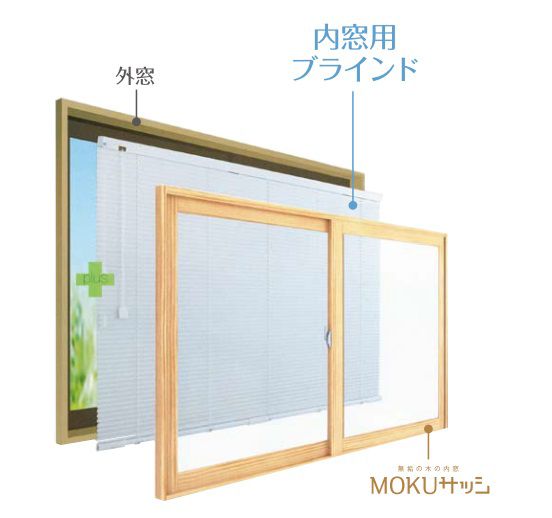 内窓MOKUサッシ オプション 内窓用ブラインド:[幅350〜500mm×高1501〜1560mm] WOODONE ウッドワン 内窓 二重窓 二重サッシ DIY リフォーム