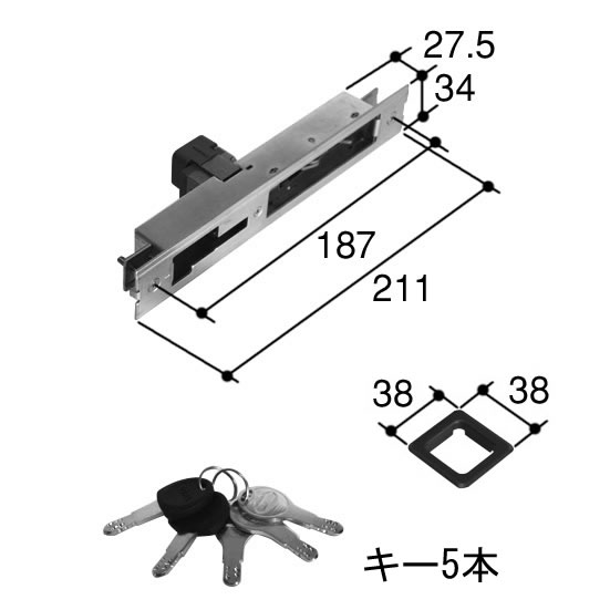 三協部品 玄関引戸 錠 [PKH5111] 召合せ錠(外部)シリンダー付 4枚建用 ネジピッチ:187ミリ ゴール製 GOAL 外障子の召し合わせ錠(鍵穴) 正規品・既存穴そのまま・