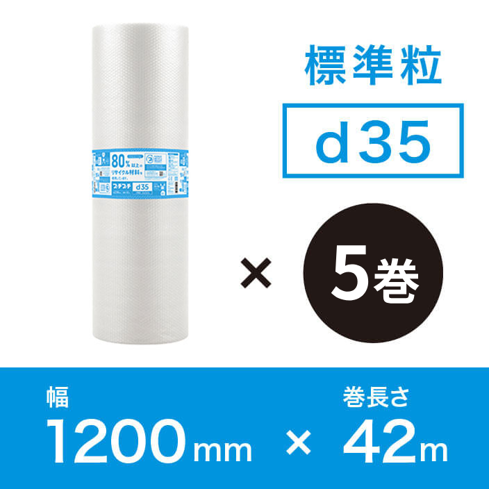 【送料込み・一部県を除く】d35 プチプチ 1200mm×42m 5本 緩衝材 梱包材 エアークッション 2層品 川上産業