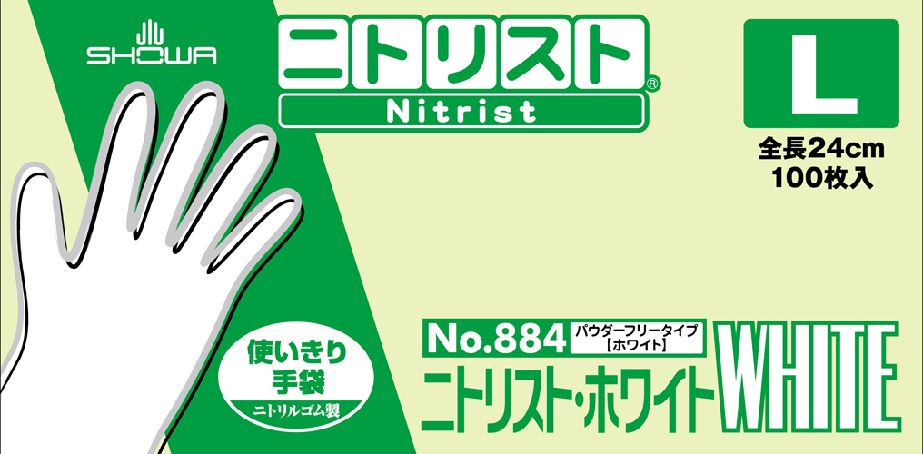 ショーワ ニトリスト・ホワイト 100枚入 884 白 100枚入 ニトリル手袋 パウダーフリー 5サイズ LL L M S SS