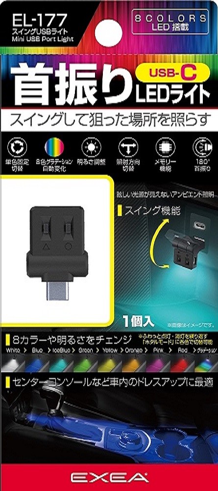 星光産業 首振りLEDライト スイングUSBミニライト USB-C