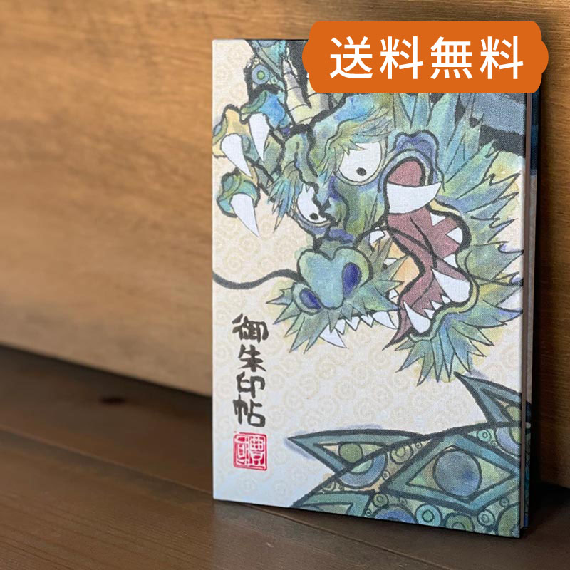 御朱印帳の大判サイズ(横12cm×縦18cm)。この御朱印帳の表紙は墨絵画家「本多豊國」先生による描きおろし墨絵をプリントしたもの。「雲龍」龍(りゅう)は龍(たつ)です。人生ではいろいろな困難があります。それに負けず起つ(たつ)エネルギーをこの龍は象徴しています。御朱印帳の紙は日本の多くの神社仏閣の御朱印帳で使用されております白色の和紙です。伝統技術を持つ職人が1冊1冊、手作りで蛇腹の御朱印帳を製本しております。