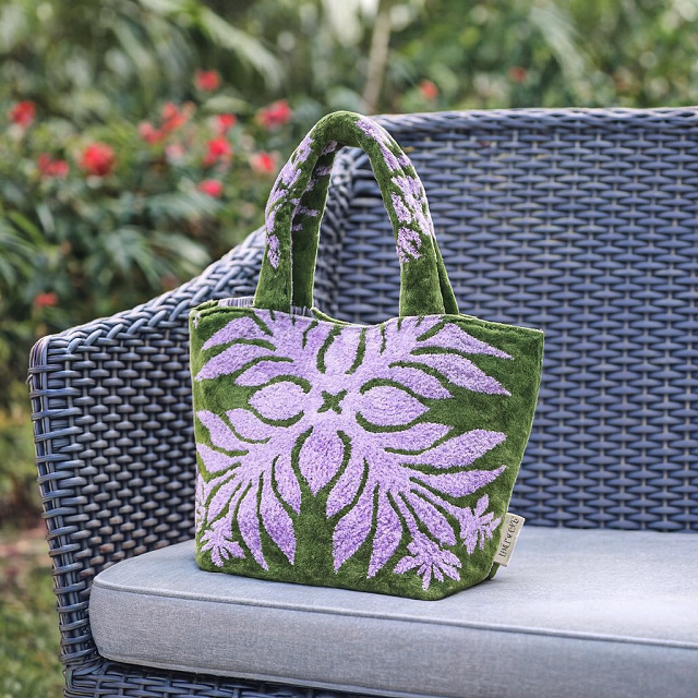 ハワイアンキルト作家キャシー中島さんプロデュースの、ハワイの代表的な植物をモチーフにした、タオルでできたトートバッグです。