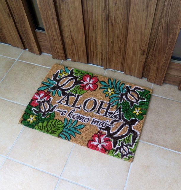 ハワイアン 雑貨 インテリア ココナッツ 玄関マット(アロハ-ホヌ) 屋外用 コイヤーマット ハワイアン雑貨