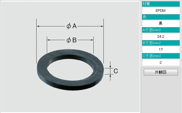 一般に水栓脚部(INAX)と本体の接続部分に使用されているパッキンです。