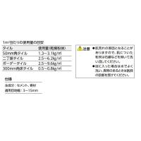 ●環境条件(気温・湿度・タイルの種類など)、混練水量その他の施工条件によって濃淡の生じることがあります。そのため、同じ面内では施工日をまたがないよう施工計画を立てることをお勧めします