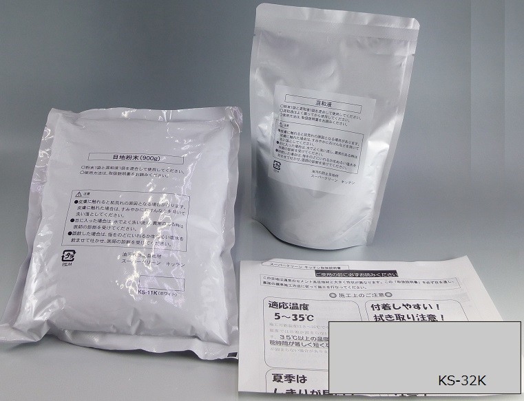 LIXIL(INAX) 油汚れ防止目地材 スーパークリーン キッチン MJS/KS-32K (ライトグレー)(目地剤0.9kg+混和液 1セット入)