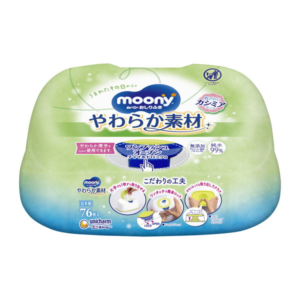商品名:ユニ・チャーム ムーニー おしりふき やわらか素材 本体 76枚入 ワンプッシュオープン