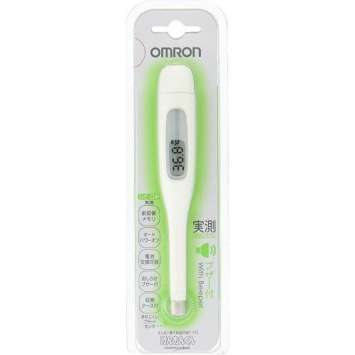 先端が平らな形状になった、オムロン独自のフラットセンサを感温部に採用。わきの下や舌下にしっかりフィットするため、小さなお子様でも検温終了まで体温計を一定の位置に保ちやすくなりました。●抗菌樹脂使用●おしらせブザー付●電池交換可能●オートパワーオフ●サイズ:幅19.6×長さ129.7×厚さ13.2mm●付属品:お試し用電池(アルカリマンガンボタン電池LR41×1個)、収納ケース、取扱説明書●前回の測定値を表示