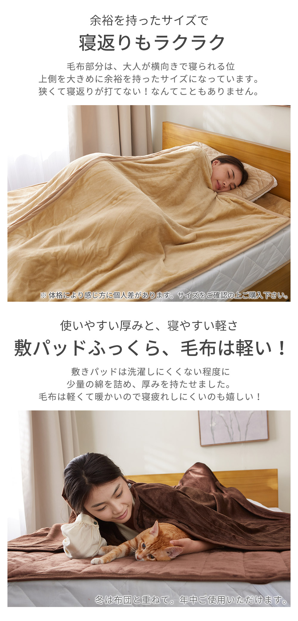 毛布と敷きパッドをひとつにした寝袋タイプの一体型敷きパッド。