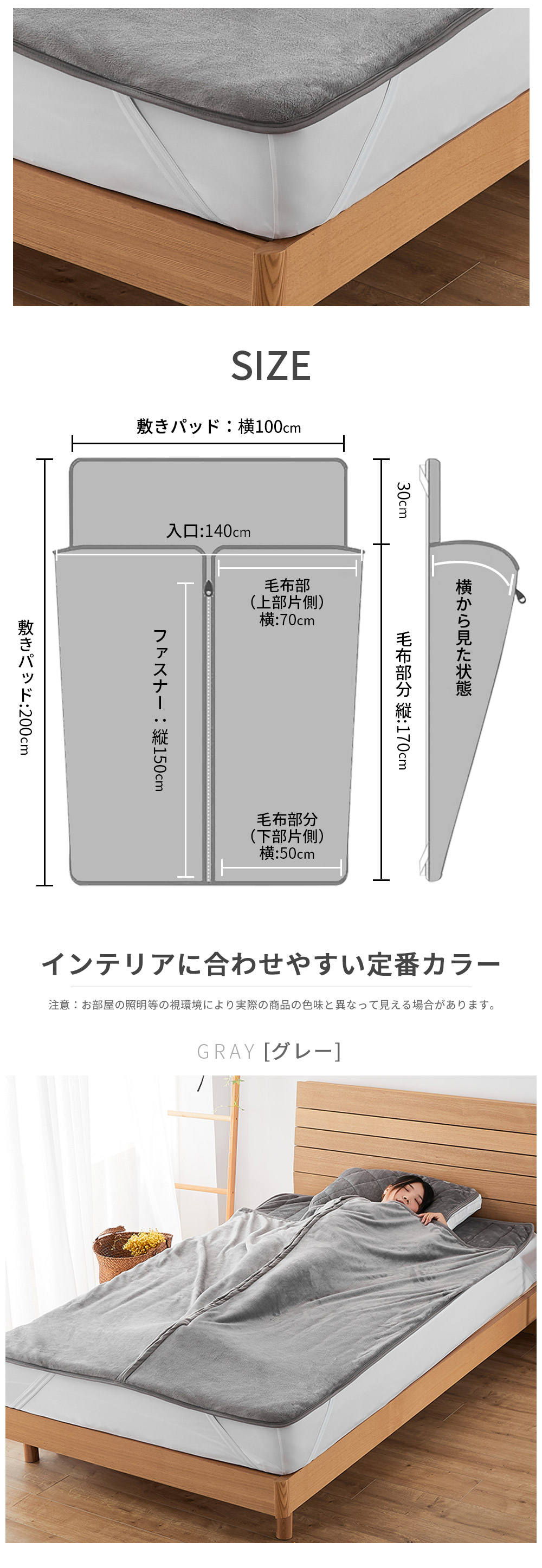 サイズ (約/cm):敷きパッド100×200/入口140