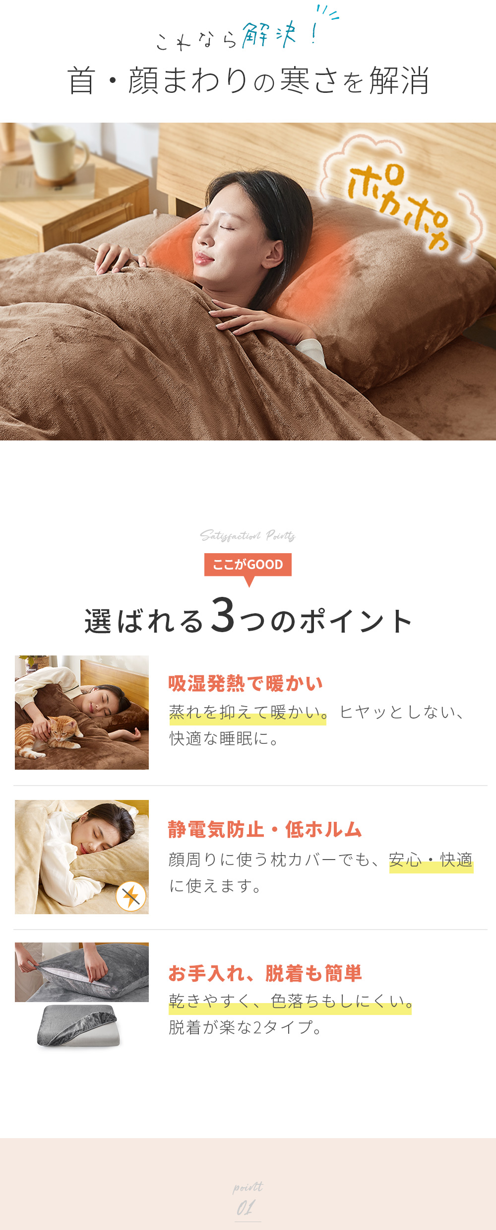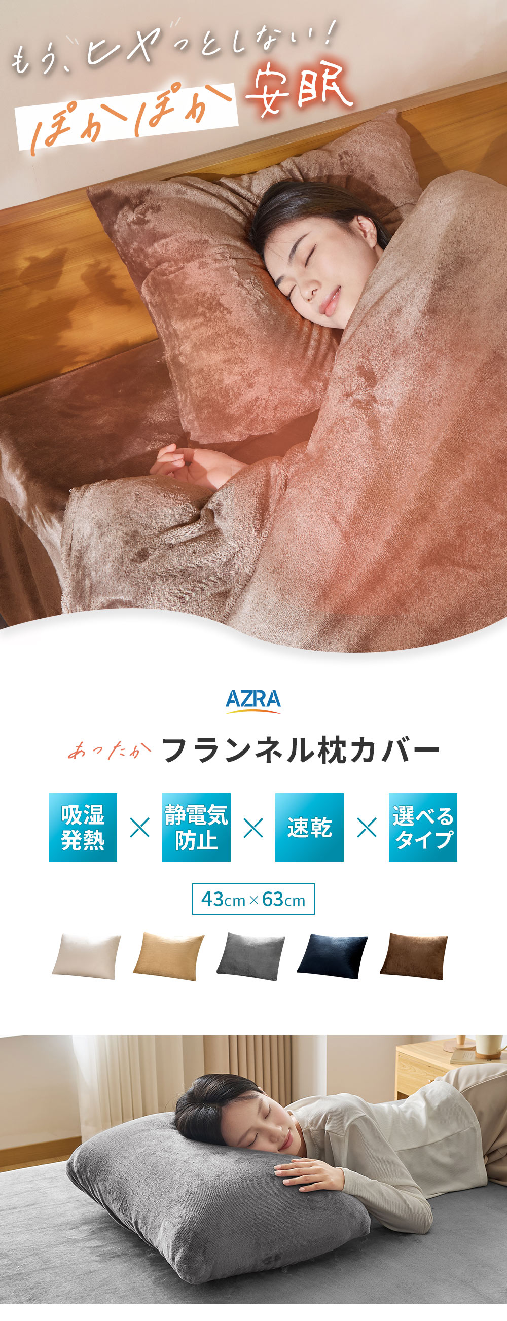 枕カバー 43×63 冬 あったか ピローケース 枕 カバー 暖かい 静電気防止加工 エコテックス認証 おしゃれ 洗える マイクロファイバー ファスナー式 AZRA アズラ