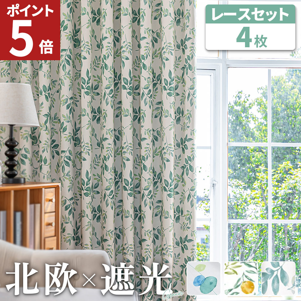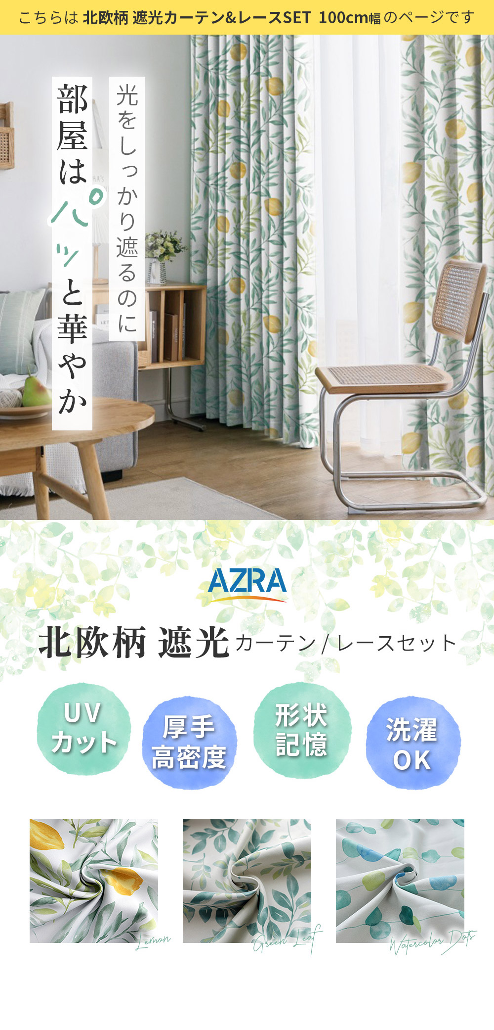カーテン 北欧 遮光 2級 カーテン 4枚セット 子供部屋 カーテン おしゃれ レモン柄 UVカットカーテン 遮熱 省エネ 100幅 AZRA アズラ