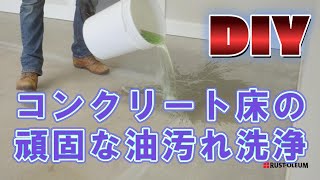 ・適切に希釈した「ヘビーデューティーディグリーサー濃縮タイプ」を汚れに塗布し、毛先の硬いデッキブラシなどで汚れ全体を擦ってください。