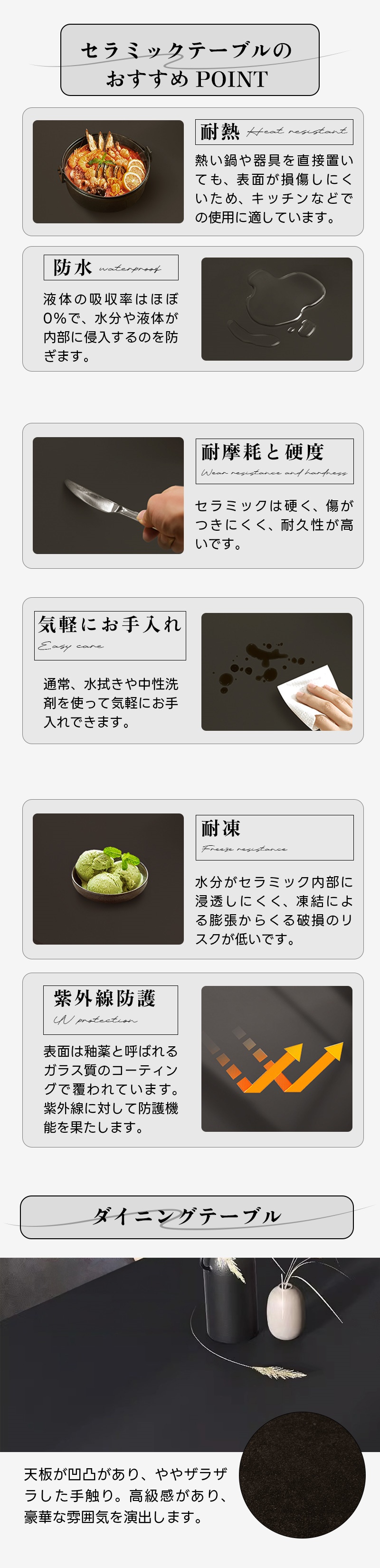 【5年保証】ダイニングテーブル セラミックテーブル セラミック天板 食事テーブル ブラック
