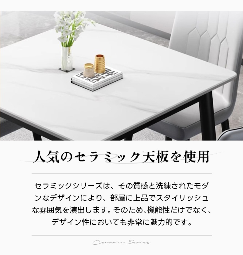 天板に耐熱・耐久性に優れたセラミックを使用したダイニングテーブル。