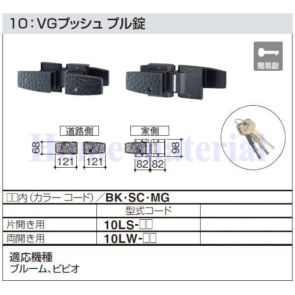 四国化成 エクステリア 補修部品 アルミ鋳物門扉 木質樹脂門扉 錠金具 10:VGプッシュ プル錠 片開き用 10LS-SC ステンカラー色