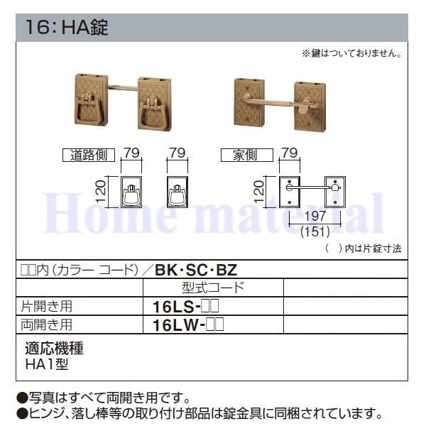 特注品 四国化成 エクステリア 補修部品 アルミ形材門扉 錠金具 16:HA錠 両開き用 16LW-PT2-BK 16LW-PT2-SC 16LW-PT2-BZ 適応機種 HA1型