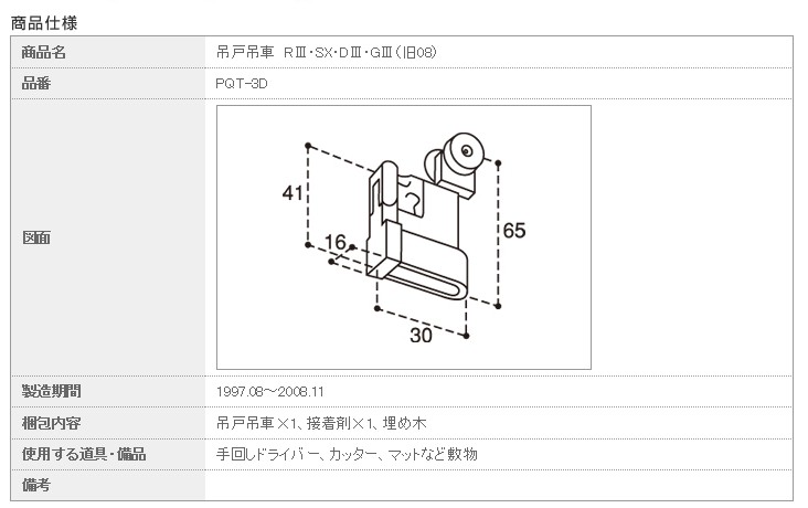 商品名 吊車 吊戸用 RIII・SX・DIII・GIII