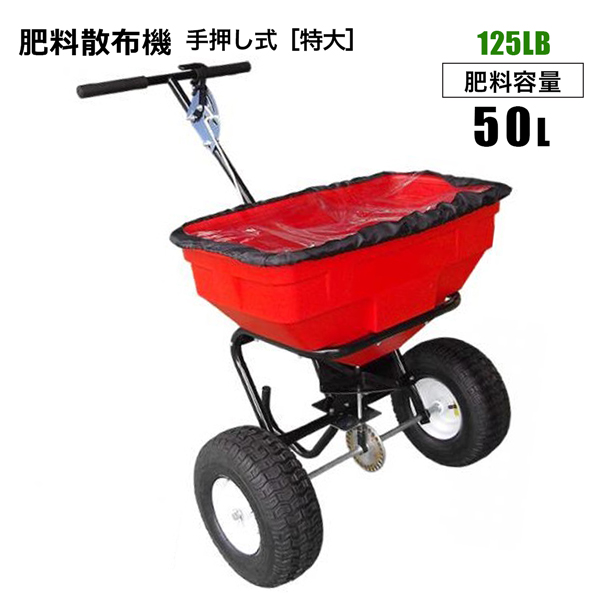 | ★車輪付きで楽々肥料散布!★ 肥料散布機(特大)125LB 【ポイント】 前に押して肥料を散布する手押しタイプの肥料散布機 車輪を回すと、肥料タンク内のピンと肥料タンク下の散布プレートが回転し、タンク内より落下した肥料をばら撒きます。 肥料の散布の他粒状の融雪剤(塩カル)などの散布にもご利用いただけます。 プラスチックのタイヤでパンク知らずです。 レインカバー付属・散布量調整可能 【商品名】 肥料散布機(特大)125LB 【商品番号】 s-ferspray-lb 【商品仕様】 容量:50L 散布距離:約4メートル (片側2m) 車輪:14インチタイヤ 重量:約18kg 本体サイズ : 約幅79cm × 高さ101cm × 奥行91cm ※お客様組立品となります。 ※手袋、ドライバー、ペンチなどの工具が必要です。(組み立て時間:およそ1時間) 【注意事項】 ※耐荷重以上の荷物を載せないでください。 ※日本語取扱説明書は付属しておりません。 ※輸入品につき本体に僅かなキズ・スレ・さび汚れなどがつく場合があります。 ※入荷時期により予告無くデザイン・色・サイズなど、細かな仕様が変更される場合がございます。 ※色合いの感じ方には個人差があり、撮影状況・PC環境により色合いが異なる場合がございます。 ※細かい点が気になる方、神経質な方はご注文お控えください。 ご注文前に必ずご確認下さい ⇒ お買い物ガイド |