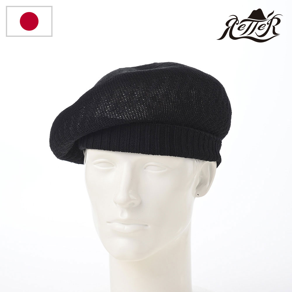 RETTER ベレー帽 帽子 春夏 メンズ レディース ハンチングベレー 日本ブランド Rib Linen Beret Big(リブ リネン ベレー ビッグ) ブラック